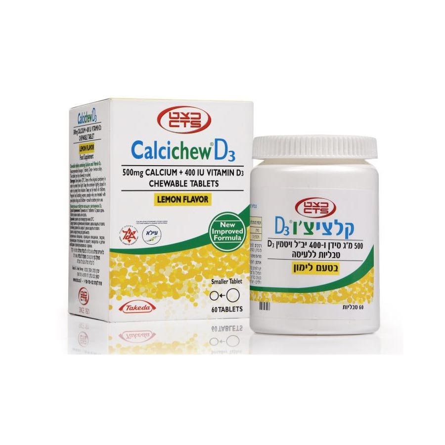 רכיבים: סידן 500 מ”ג (1250 מ”ג קלציום קרבונט) וויטמין D3 400 יב”ל.