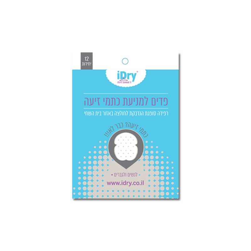 idry מגן זיעה – פדים לבית השחי, דק מאוד, נדבק ישירות ובצורה בלתי נראית לבגדים.