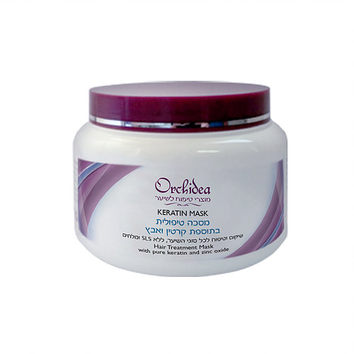orchidea מסיכת קרטין לשיקום וטיפוח כל סוגי השיער ללא מלחים, מומלץ בעיקר לשיער יבש, פגום וקשה לסידור.