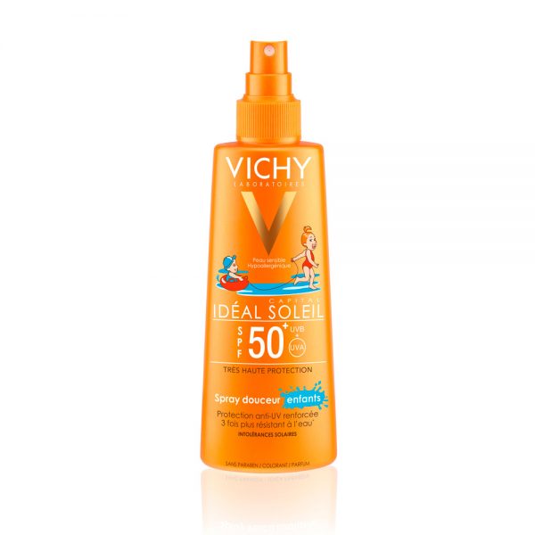 וישי ספריי לגוף ולפנים לילדים להגנה גבוהה ביותר (SPF50+) מותאם לילדים. מעניק הגנה גבוהה מפני כוויות ונזקי החשיפה לשמש.